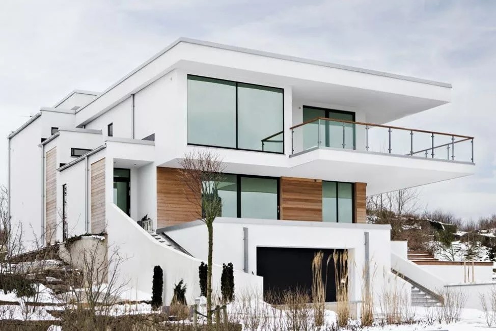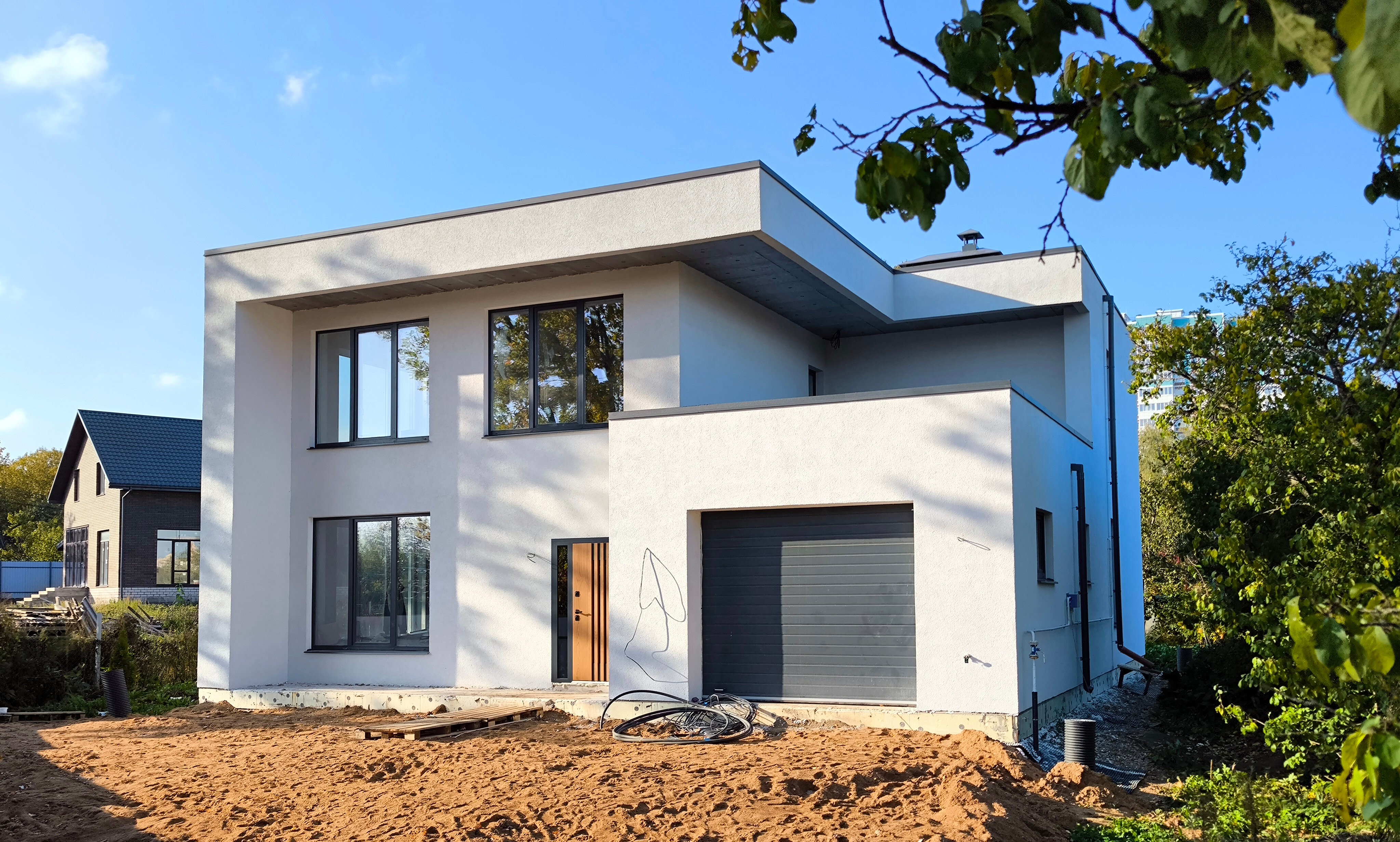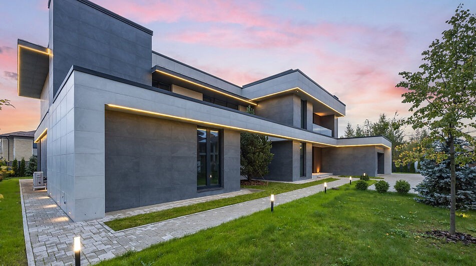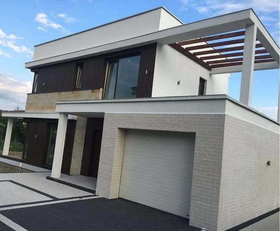 Nowoczesny obiekt mieszkalny z estetycznym wykończeniem elewacji.